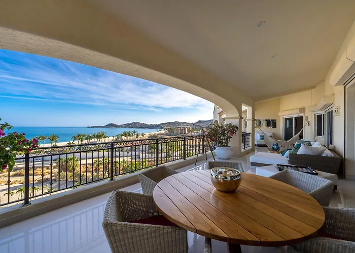 4-slaapkamer Casa Mangata Appartement San José del Cabo biedt uitzicht op de zee en ligt op een steenworp afstand van Playa Hotelera. Het strand appartement in San José del Cabo heeft een zwembad en een terras met uitzicht op het zwembad.